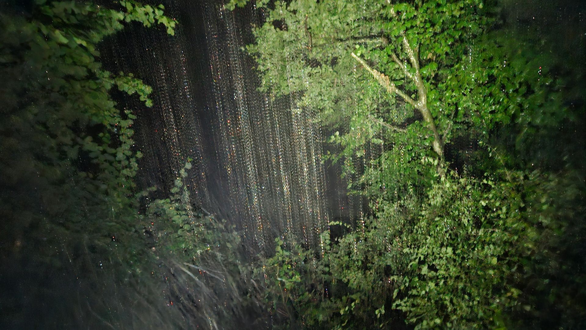 Et geet een duerch ee Schloff eran an d'Hiel, duerch Waasser an iwwer Trëttsteng. An dann ass ee Lach am "Plafong" an d'Waasser fällt an d'Hiel.